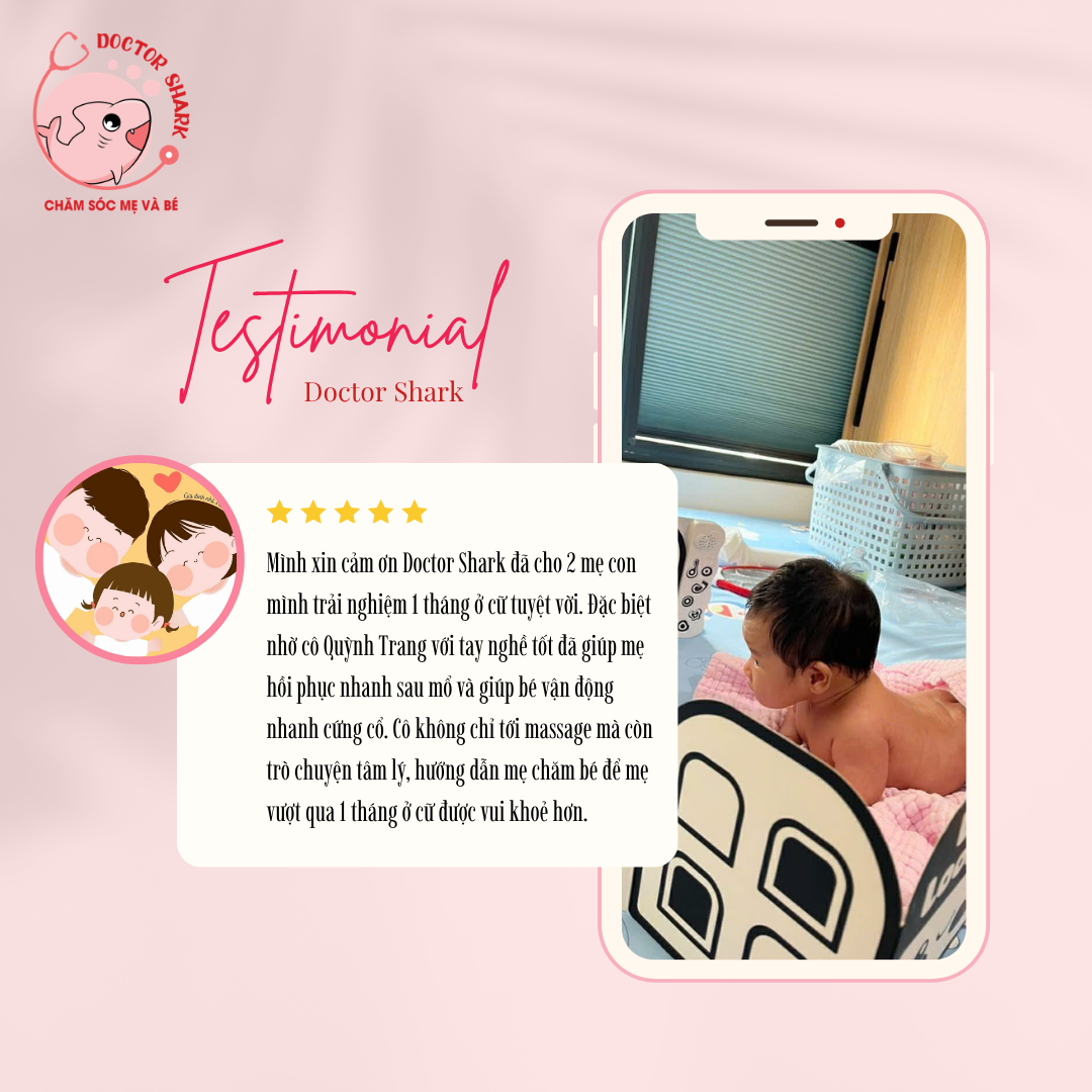 Hành trình làm mẹ sẽ trở nên nhẹ nhàng hơn bao giờ hết với gói chăm sóc sau sinh cao cấp nhất tại Doctor Shark.Dịch vụ tắm bé được tặng kèm khi đăng ký gói chăm sóc mẹ.Tất cả các nguyên liệu sử dụng cho mẹ và bé hoàn toàn từ thiên nhiên, đảm bảo an toàn tuyệt đối cho sức khoẻ của cả mẹ và bé.
